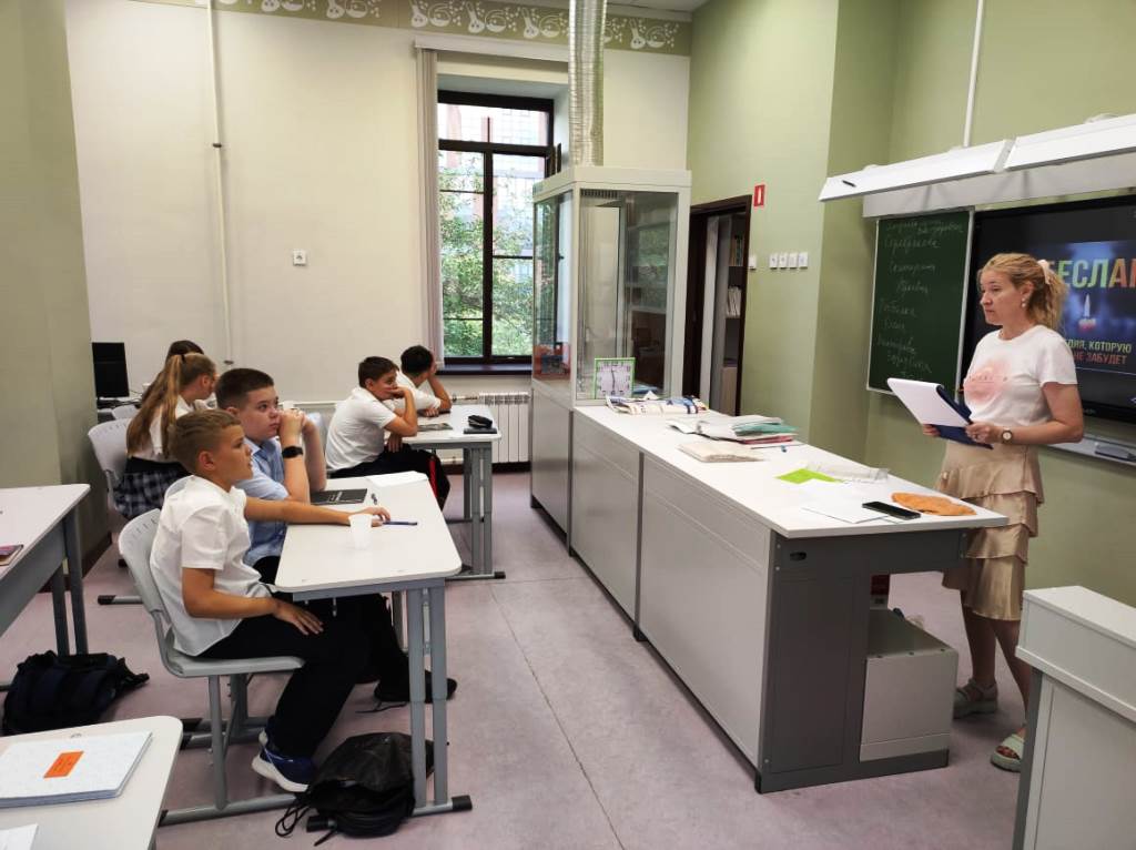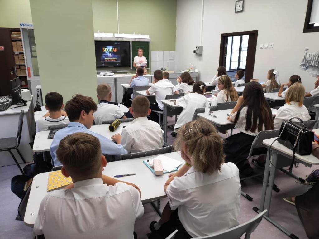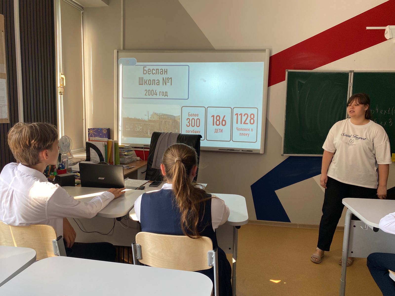 В рамках мероприятия ребята познакомились с печальной памятной датой сентября – Днем солидарности в борьбе с терроризмом, узнали краткую информацию о трагедии в городе Беслан, где 1 сентября 2004 года во время празднования Дня знаний в школе № 1 террористы напали и удерживали детей и их родителей 3 дня без воды и еды в душном спортзале.