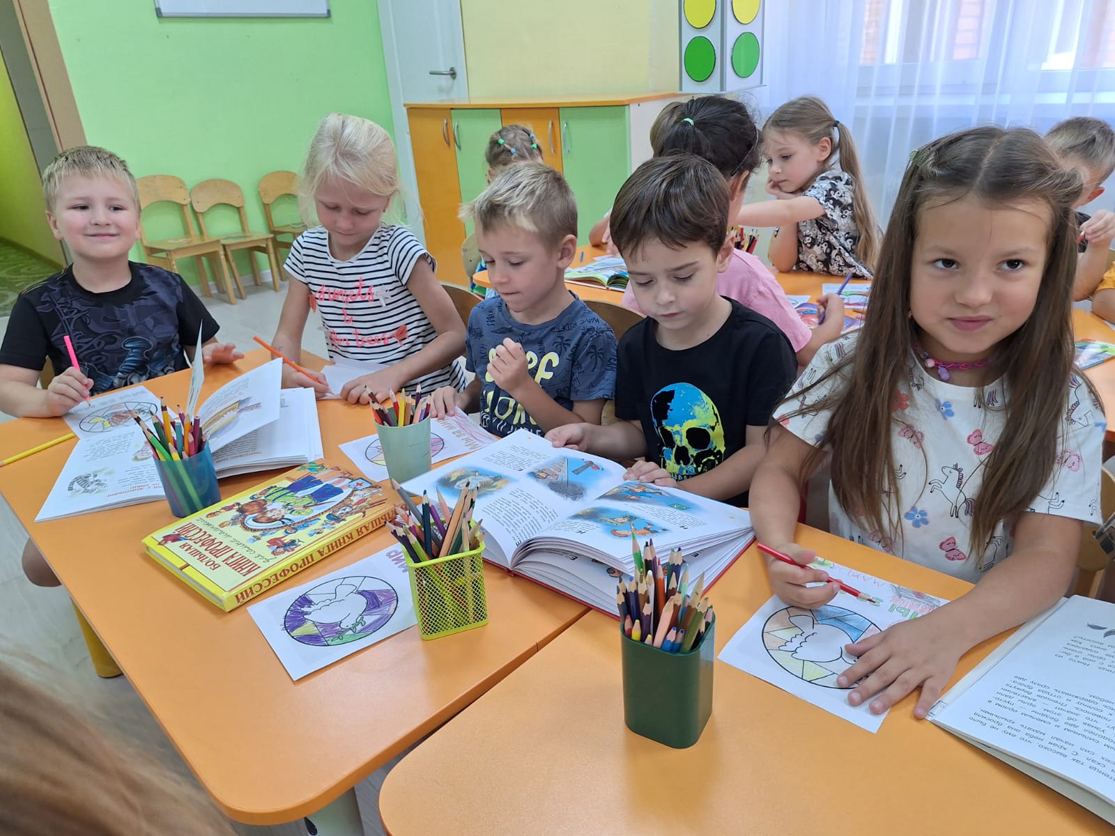В конце мероприятия мальчишки и девчонки прослушали песню «Солнечный круг» в сопровождении детских рисунков, после чего приступили к раскрашиванию витражей, в центре которых был изображен символ мира – голубь с ветвью оливы, а также познакомились с литературой с книжной выставки «Будь в безопасности!».