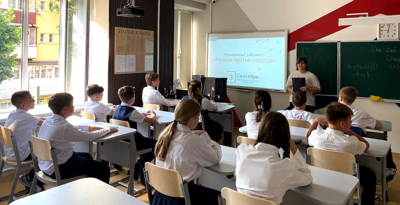 К Дню солидарности в борьбе с терроризмом специалист музыкально-нотного отдела Центральной городской библиотеки им. Горького провела мероприятие с учащимися в ЧОУ «Свято?Георгиевская православная средняя общеобразовательная школа».