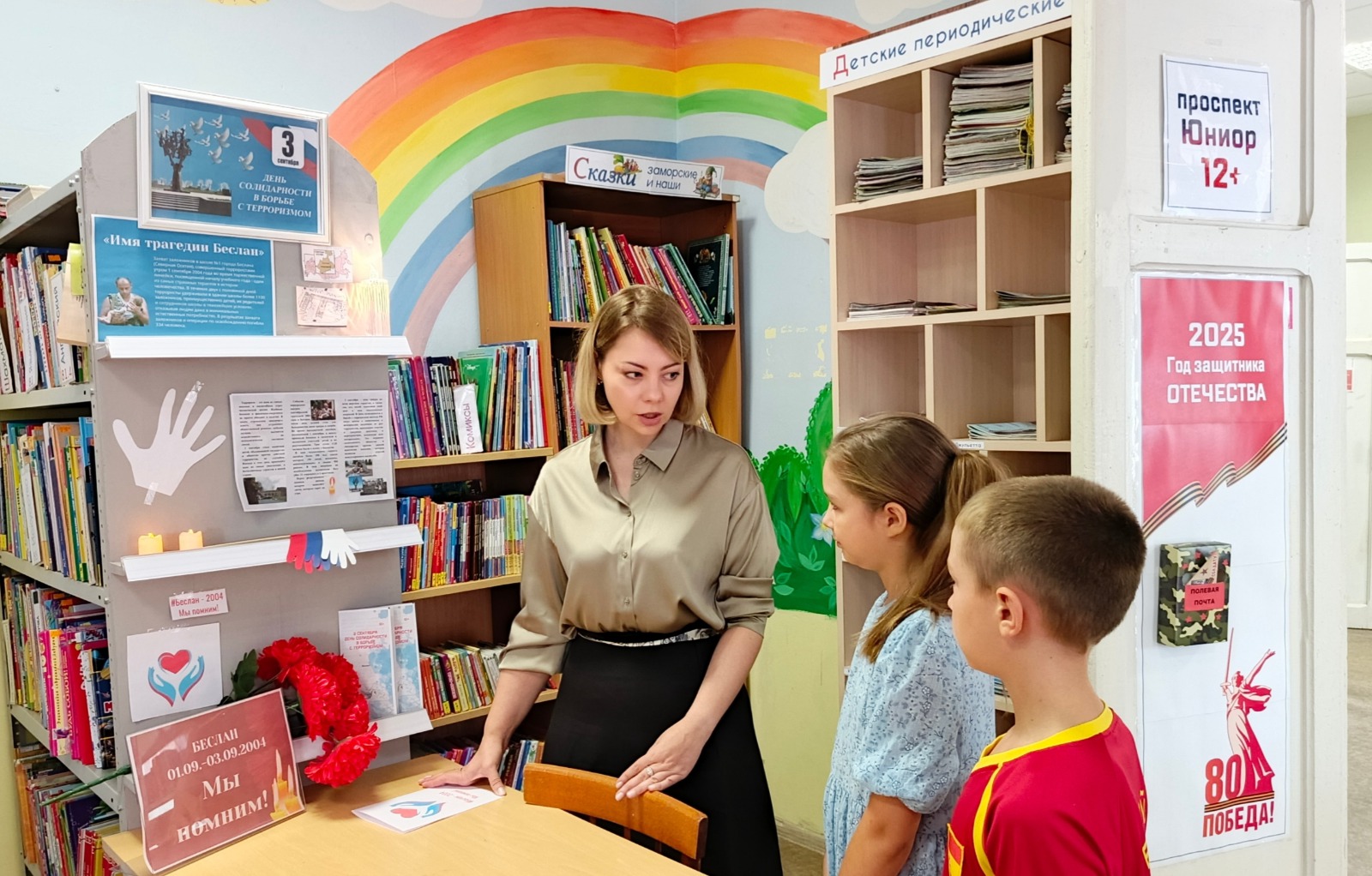 В Детской библиотеке имени К.И. Чуковского состоялся час мужества «Имя трагедии – Беслан», приуроченный ко Дню солидарности в борьбе с терроризмом. Мероприятие прошло для учащихся МБОУ №84.