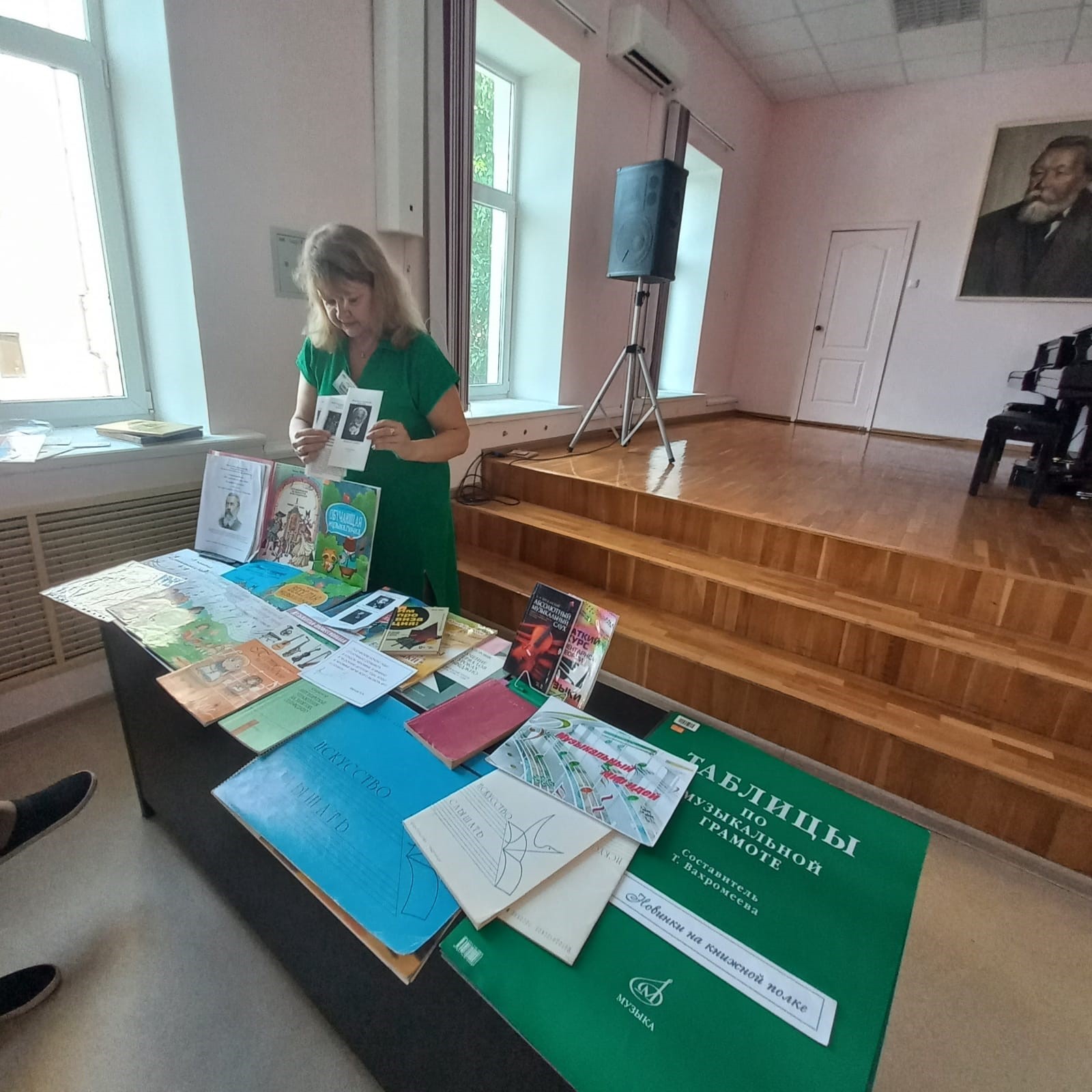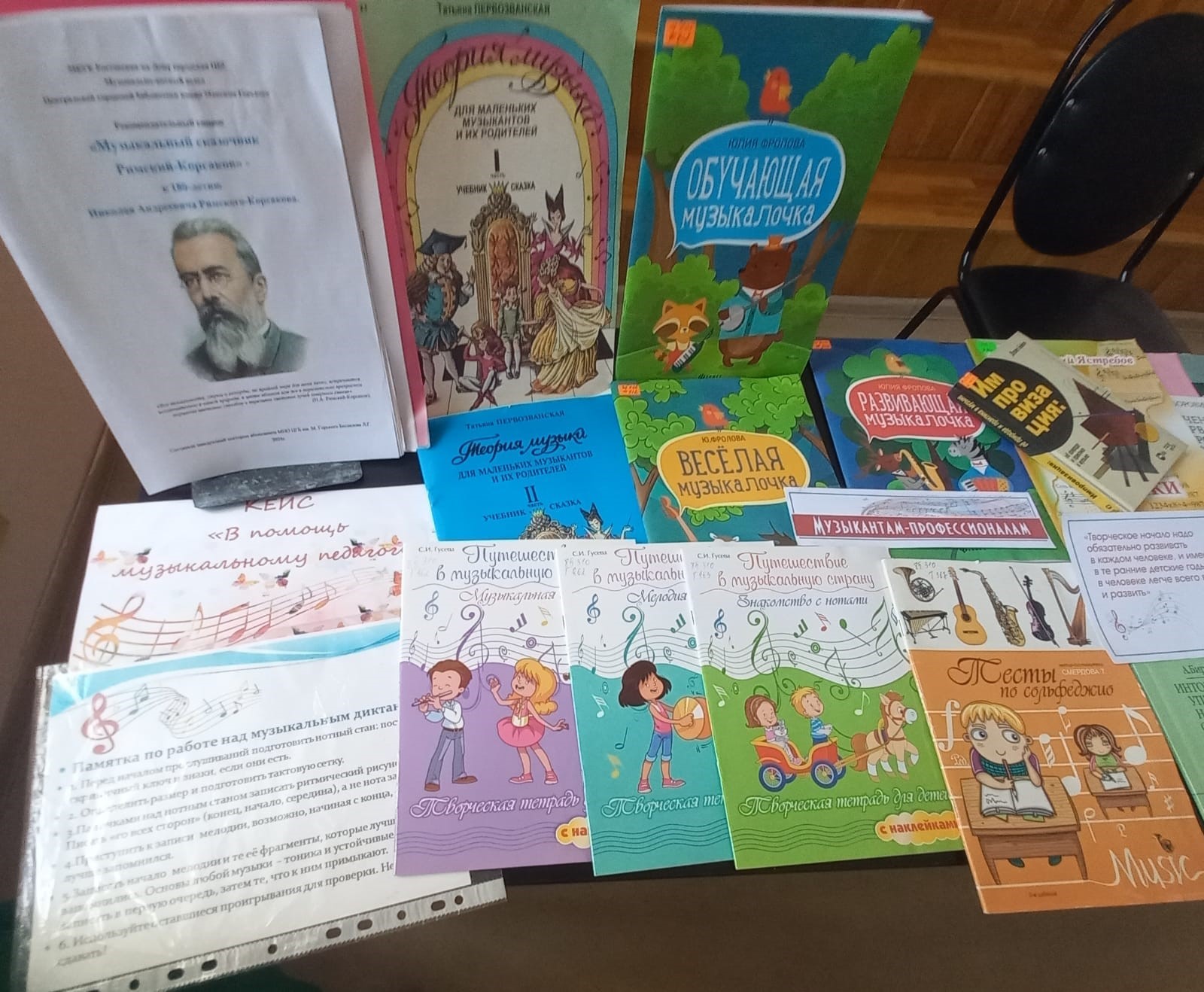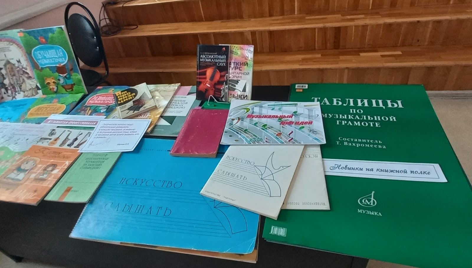Участникам литературного часа представлены учебные пособия по теории музыки из фонда музыкально-нотного отдела, справочные издания, методические рекомендации для преподавания сольфеджио, подготовительных занятий по слушанию музыки.