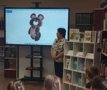 После небольшой физминутки дети посмотрели рисунки очень любимых Виктором Александровичем котов. В продолжение часа прошел показ книг из фонда библиотеки, иллюстрации в которых выполнены Виктором Чижиковым.