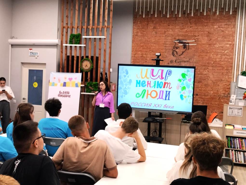 Специалисты читального зала ЦГБ имени М. Горького подготовили присутствующим занимательную презентацию о знаменитых благотворителях и меценатах России. Присутствующие узнали о Савве Ивановиче Мамонтове, Савве Тимофеевиче Морозове, Козьме Терентьевиче Солдатёнкове, Дмитрии Михайловиче Голицыне, братьях Третьяковых и о других покровителях и просветителях культурного наследия нашей страны. Было отмечено, что благотворительность и меценатство в России продолжается и в наше время. Участники мероприятия узнали о таких благотворителях современности, как Сергей Галицкий, Денис Свердлов, Алишер Усманов, Андрей Мельниченко и другие.
