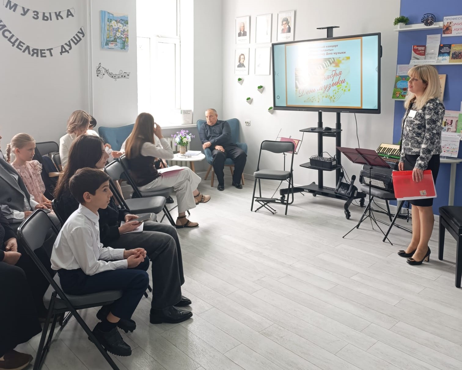 Ведущий концерта, заведующий учебной частью ДШИ имени А. П. Артамонова, педагог Конончук Александр Валерьевич, поздравил всех присутствующих с Днём музыки.