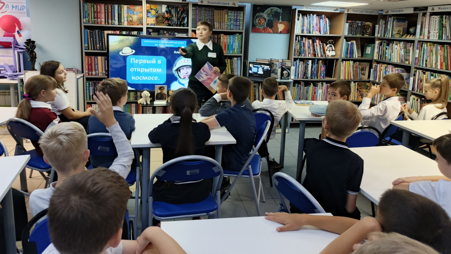 Для более яркого понимания героической миссии космонавта участники просмотрели видеоролик от Роскосмос ТВ «Космонавт Алексей Леонов». Этот фрагмент вызвал неподдельный интерес у школьников и помог им представить масштаб и сложности космических полетов.