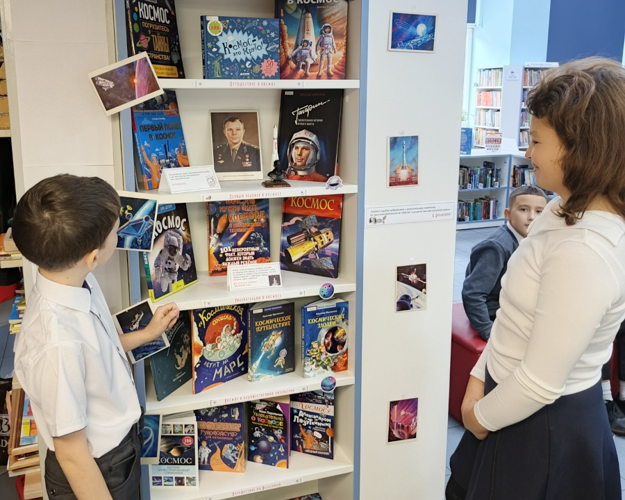 В детском отделе была организована выставка «Вперёд, к космическим далям», на которой все желающие могли ознакомиться как с популярной литературой, так и с научными изданиями по космонавтике, расширяя свои знания и интересы в этой области.