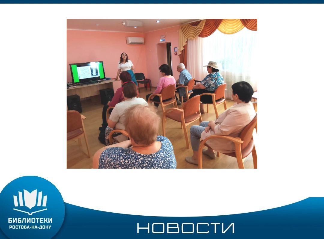 В музыкальном салоне «АнтреСоль» музыкально-нотного отдела Центральной городской библиотеки имени М. Горького в клубе «Золотая лира» состоялась праздничная программа «Мой любимый Ростов» с участием ансамбля «Поющие сердца» Всероссийского общества инвалидов Октябрьского района г. Ростова-на-Дону. Руководитель ансамбля — заслуженный деятель Всероссийского музыкального общества Валентина Кимлач, концертмейстер — Фёдор Иовин. В начале мероприятия состоялся просмотр видеороликов об истории города «Мой ...