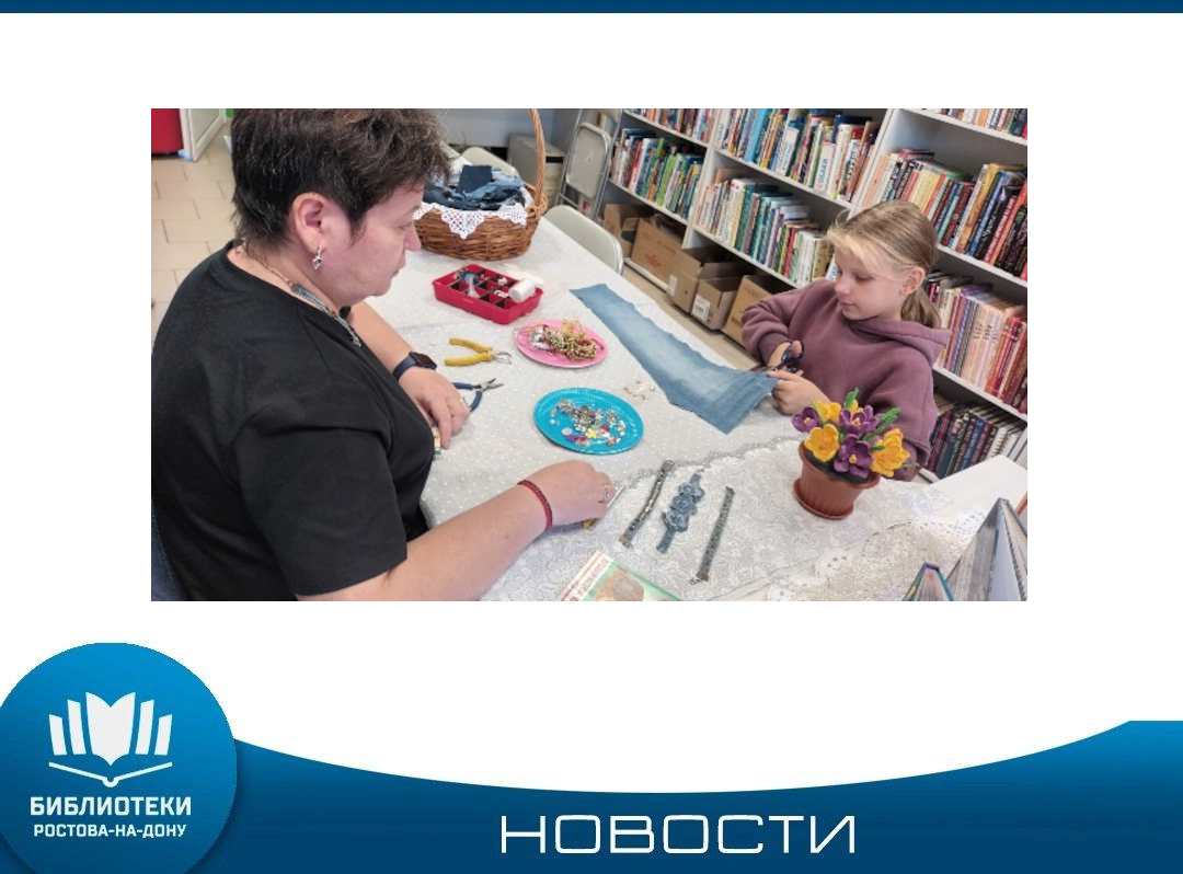 В рамках проекта «Пушкинская карта» детская библиотека имени А. В. Луначарского провела мастер-класс по изготовлению браслетов из джинсовой ткани «Новая жизнь старых вещей». Гостья мастер - класса под руководством библиотекаря смогла изготовить джинсовый браслет, проникнувшись особой аурой «джинсового» творчества. Сотрудник рассказала о происхождении денима и истории возникновения джинсов, а также раскрыла секреты популярности джинсовой одежды. В процессе работы используя джинсовую ткань, участница ...