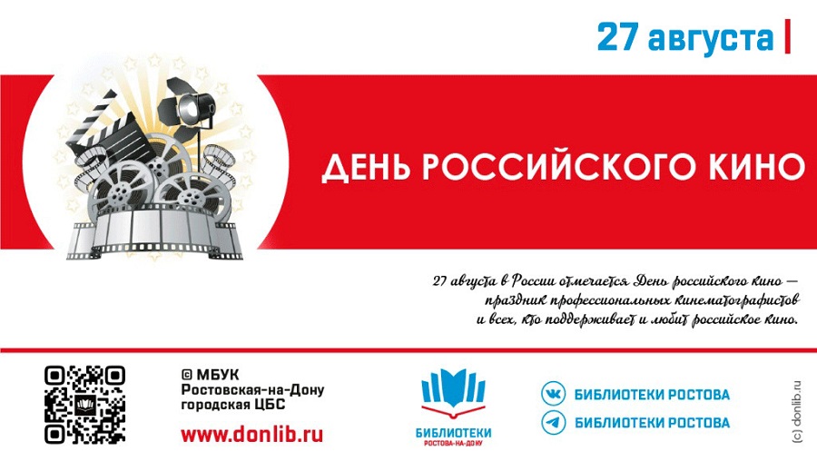 27 августа отмечается День российского кино – профессиональный праздник работников, которые имеют отношение к кинематографу: сценаристов, режиссёров, операторов, актёров, каскадёров, вспомогательного персонала. История праздника началась в 1980 году, когда в соответствии с Указом Президиума Верховного Совета СССР появился «День советского кино». В годы перестройки он менял свое название: «День кино», «День кино России». После распада СССР утвердилось название «День российского кино». Дата праздника ...