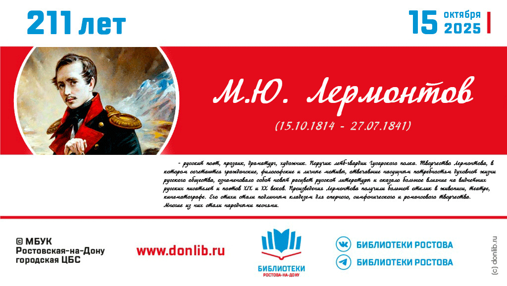 211 лет со дня рождения великого русского поэта Михаила Юрьевича Лермонтова