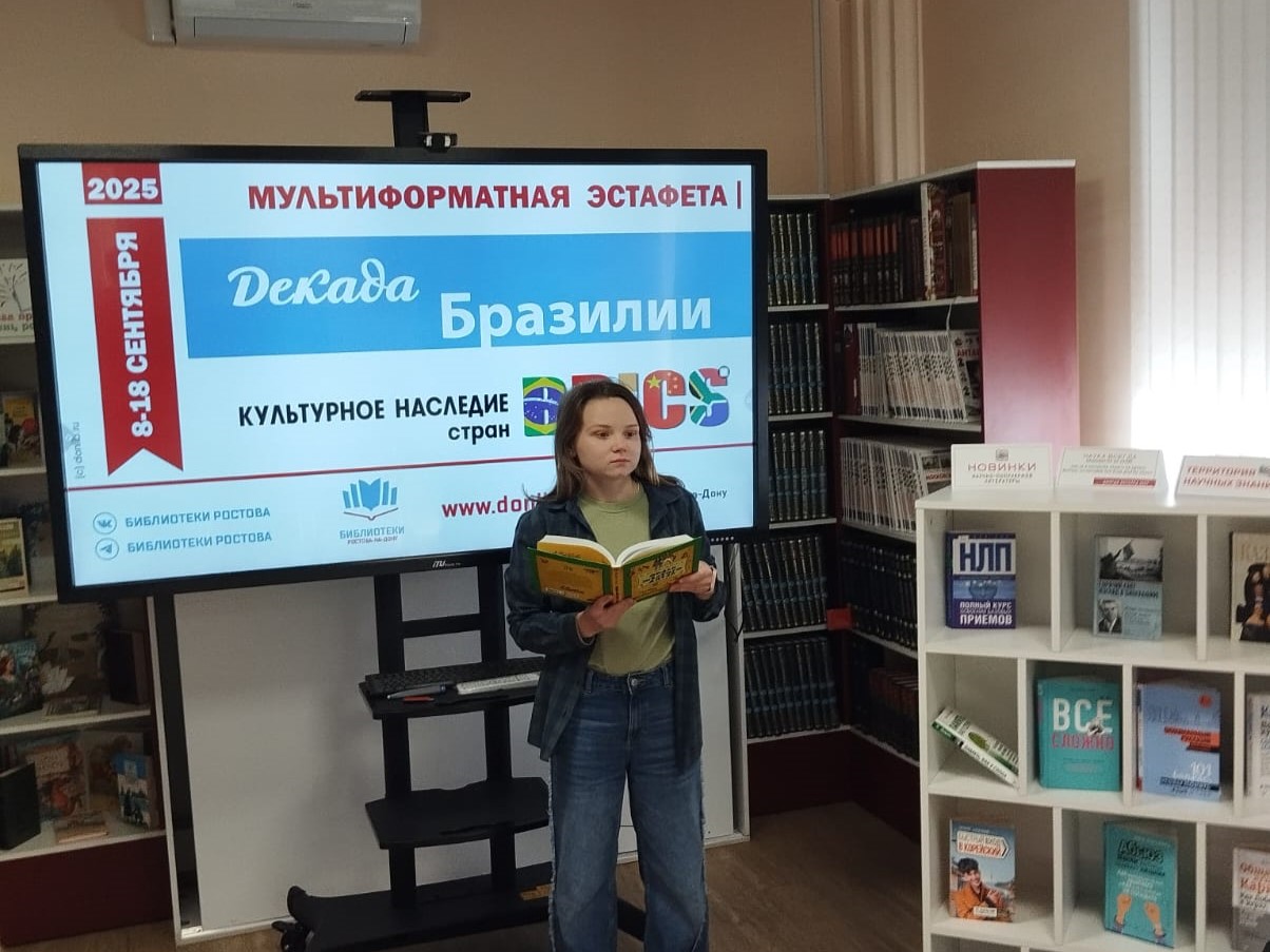 Сначала присутствующим рассказали о Декаде Бразилии, проходящей в библиотеке с 8 по 18 сентября.