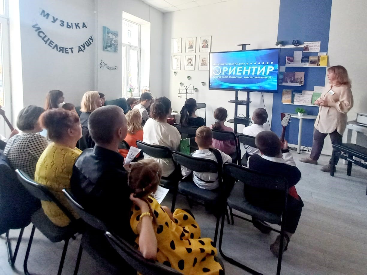 На мероприятии учащимся ДМШ имени М. М. Ипполитова-Иванова представлены видеоролики проекта Централизованной библиотечной системы, размещённые на сайте https://donlib.ru/orientir/ — «Профессия композитор», «Профессия преподаватель игры на флейте», «Профессия дирижёр». А также во время встречи с учащимися представлен весь ресурс проекта «Ориентир» о различных профессиях, который можно посмотреть на сайте дистанционно.