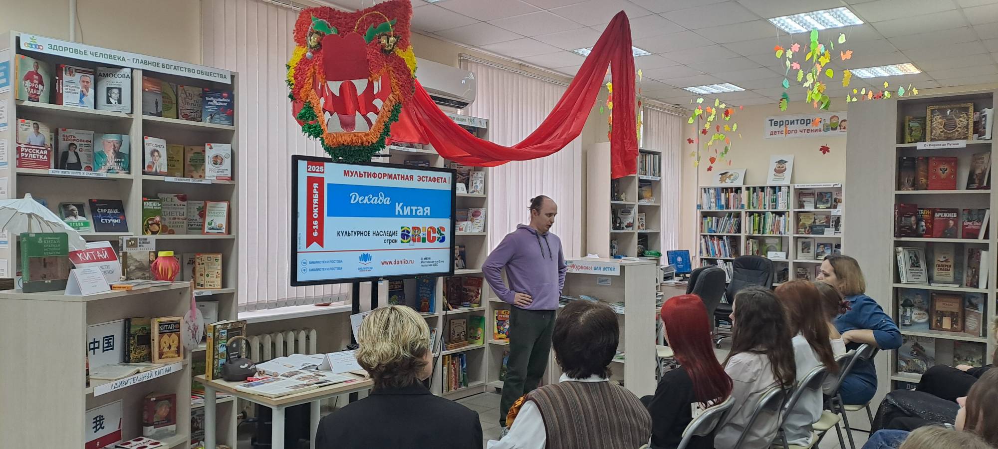 В эти дни специалисты библиотеки проведут ряд культурно-досуговых мероприятий, мастер-классов, церемоний и встреч с интересными людьми. Участники узнают много интересного об этой стране, поскольку Китай - одно из древнейших государств, которое не боится оглядываться в прошлое и при этом смело смотрит в будущее, где древняя мудрость сочетается с передовыми технологиями.