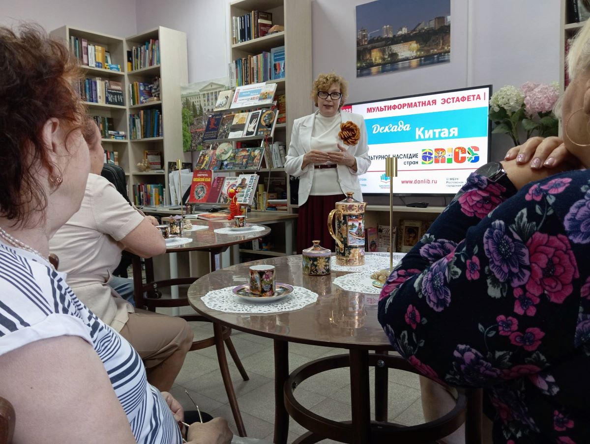 В продолжение мероприятия заведующий сектором художественной литературы познакомила гостей с основными требованиями и разными видами китайской чайной церемонии. Китайцы обозначают дух чаепития терминами «хэ» и «чжэнь», означающими мир, наслаждение и истину. Обрядовая подача чая создает ощущение душевной гармонии и единства с другими людьми во время празднования важных событий. С помощью красивого ритуала демонстрировались философские принципы конфуцианства, даосизма и буддизма.