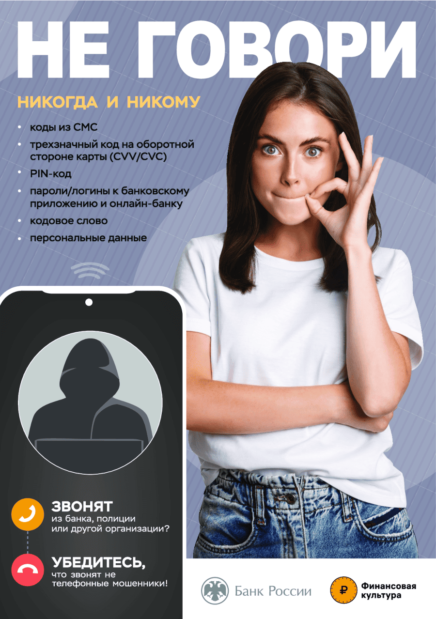 Просят сообщить конфиденциальные данные. Злоумышленников, прежде всего, интересуют ваши личные данные: реквизиты банковских карт, пароли для доступа к онлайн-банкингу и коды подтверждения из SMS-уведомлений. Ни под каким предлогом не сообщайте эту информацию незнакомым людям, даже если они представляются сотрудниками банка или других официальных организаций. Помните, настоящие сотрудники никогда не будут запрашивать у вас секретные данные.