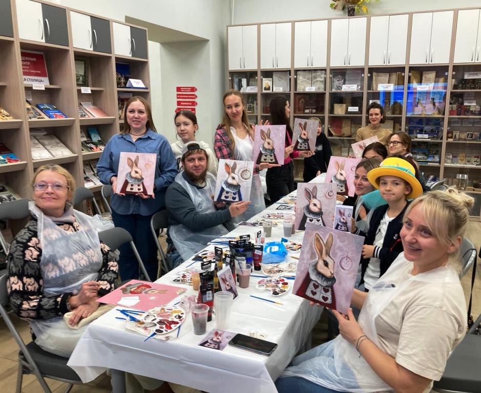Для взрослых был проведён мастер-класс по живописи Лидии Железняк, художника-живописца из Ростова-на-Дону «Рисуем Белого Кролика».