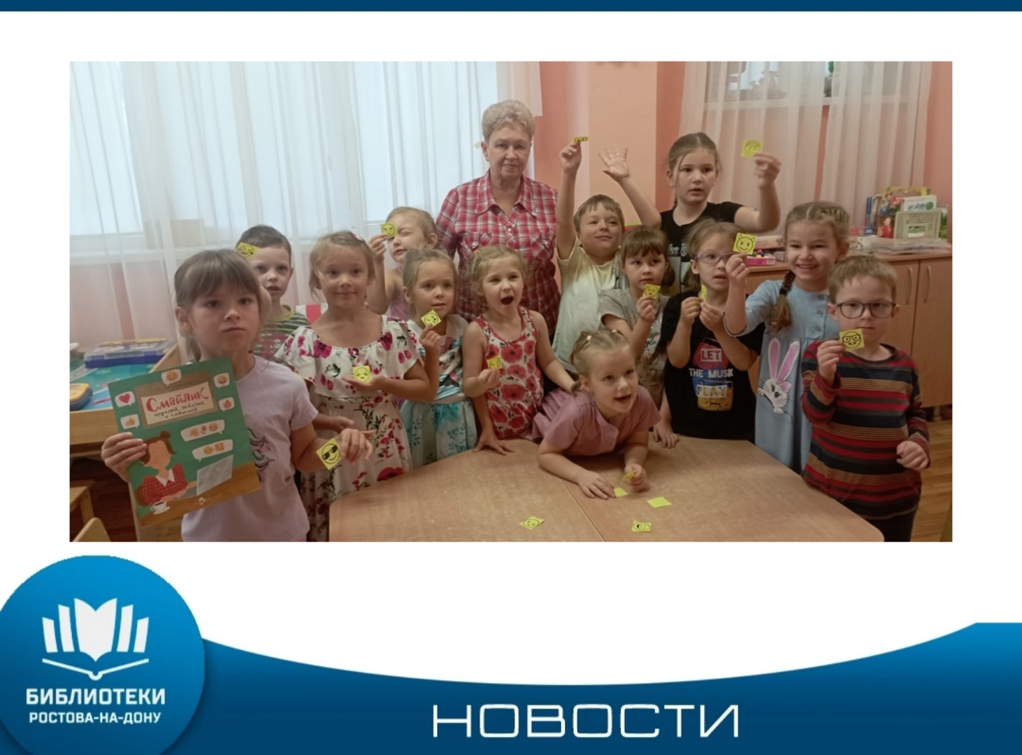 19 сентября день рождения празднует современный колобок - смайлик, без которого уже невозможно представить наше общение. Именно ему было посвящено мероприятие «Круглый, желтый, озорной», которое специалисты библиотеки имени Н. А. Некрасова провели для воспитанников детского сада «Нивушка». Ребят познакомили с книгой Степана Кайманова «Смайлик», из которой они узнали об истории его появления. Затем дети учились показывать эмоции, вытягивая карточки с разными смайликами. Они выполняли вместе ...